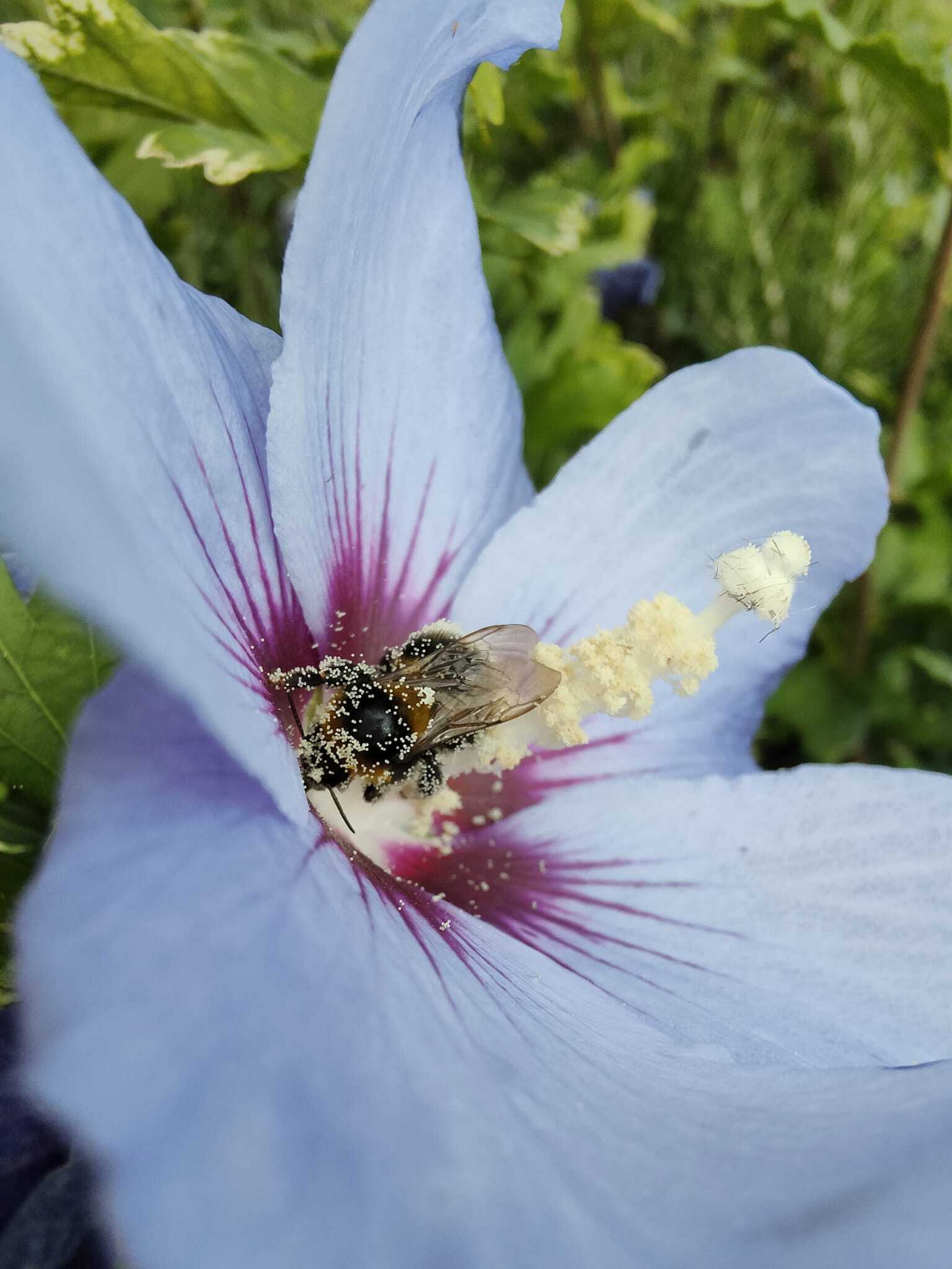 Quelle merveilleuse photo si bien prise que l’on remarque tout le pollen sur cette abeille !