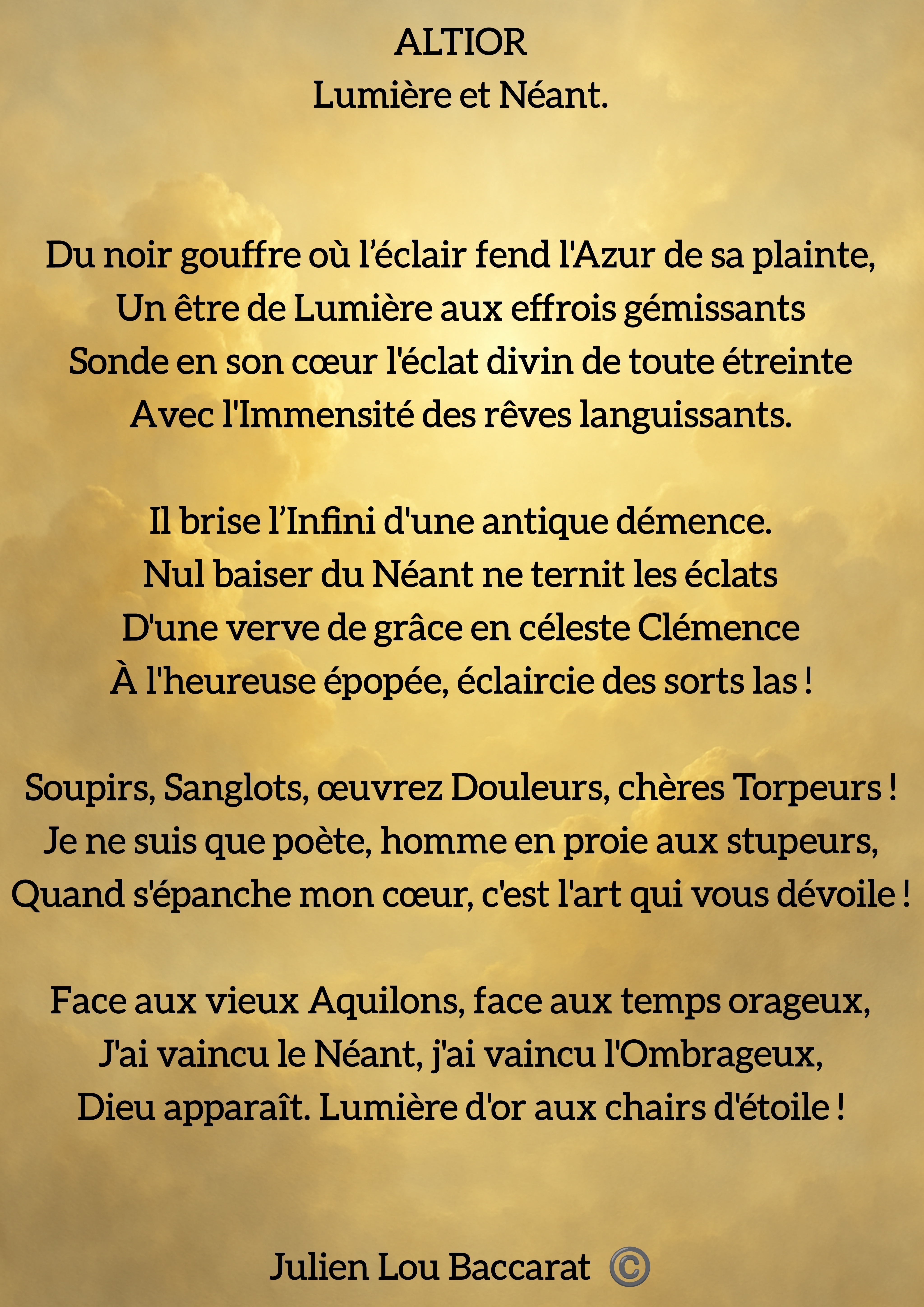 Lumière et Néant.Du noir gouffre où l’éclair fend l’Azur de sa plainte,