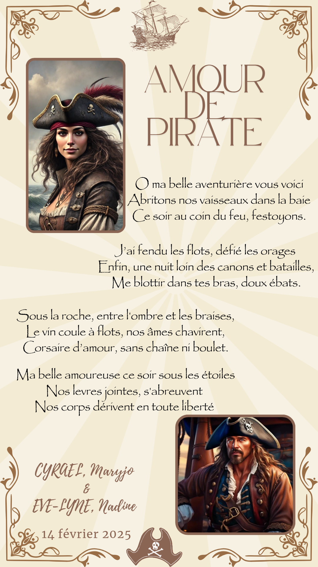 Magnifique DUO que cet « AMOUR DE PIRATE » félicitations à vous 2 , j’aime beaucoup!