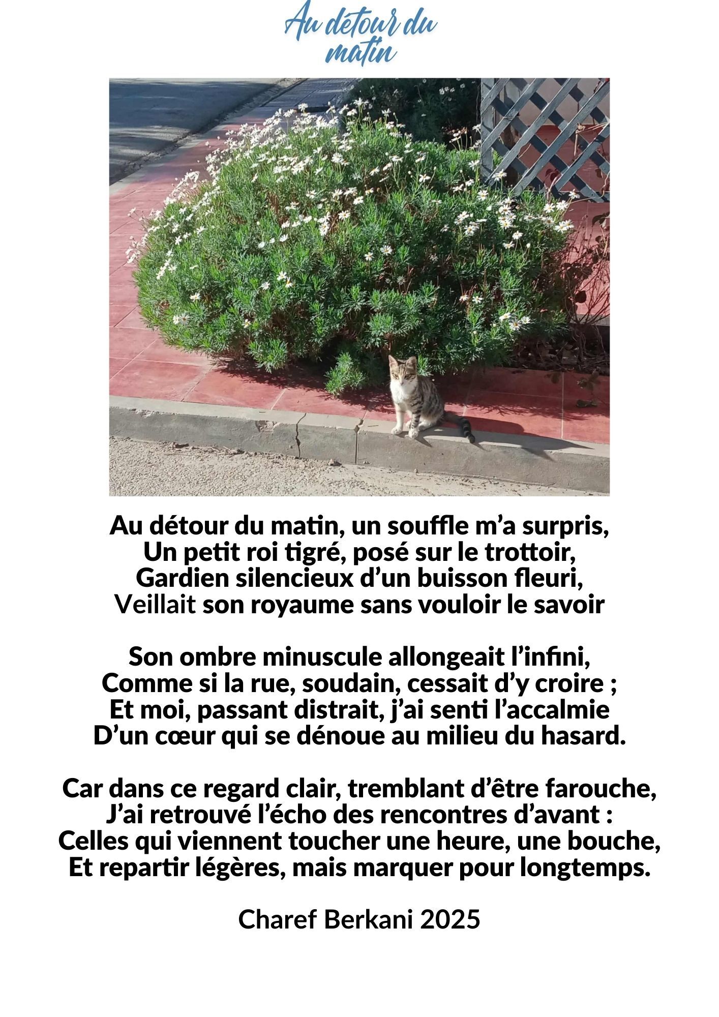 Il était là, minuscule phare planté au bord du jour, un chat maigre, un peu timide, comme s’il avait été déposé par la lumière elle-même.