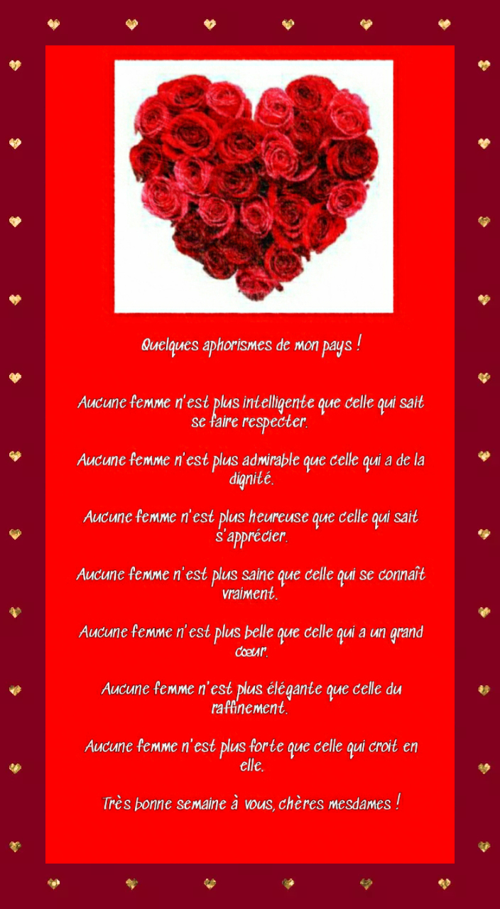De très beaux aphorismes en faveur des femmes. J’aime en particulier: »Aucune femme n’est plus belle que celle qui a un grand coeur »ce avec quoi je suis entièrement d’accord car la vraie beauté est intérieure