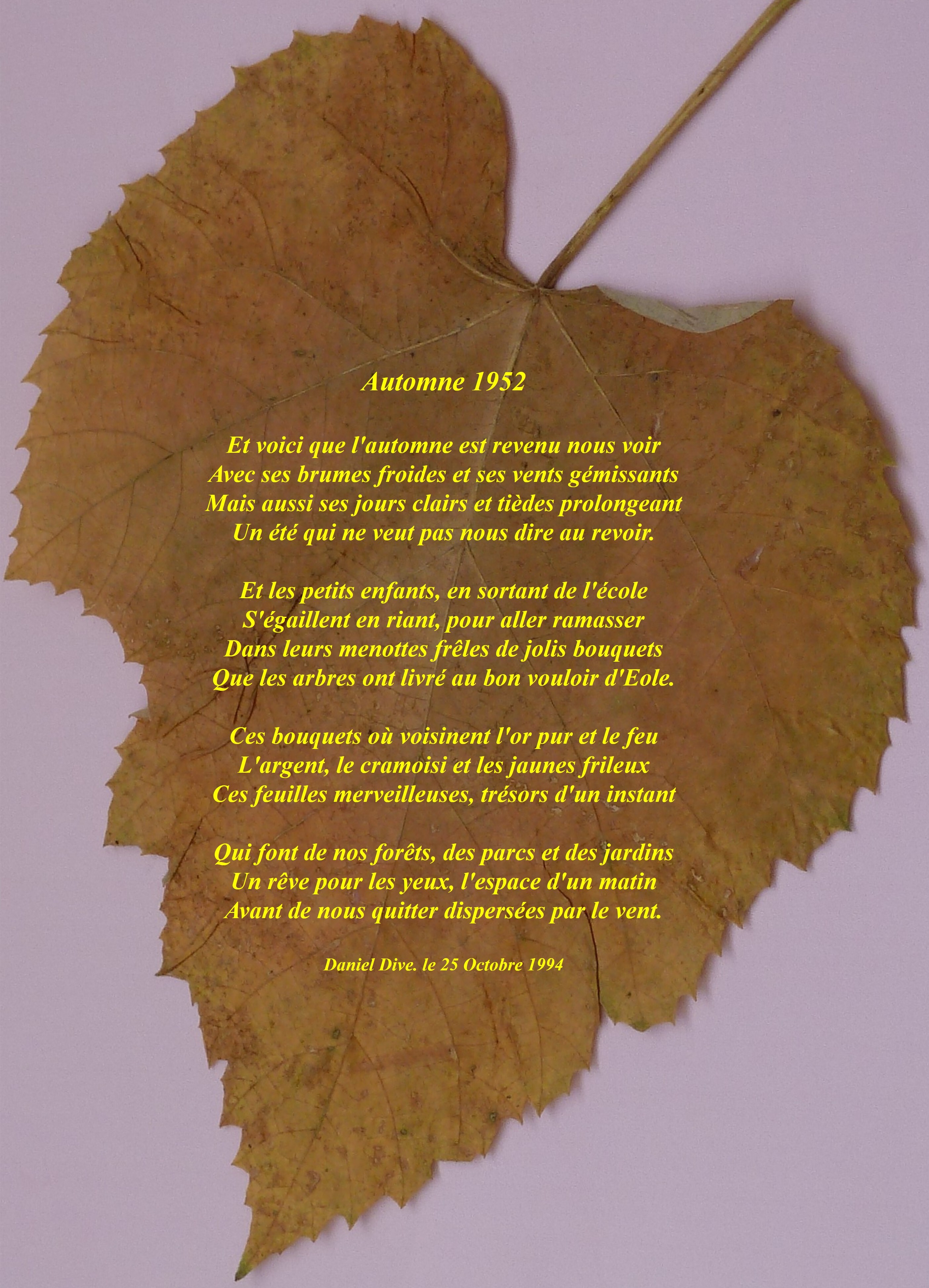 Cette feuille d’automne rappelle l’enfance et me rappelle ce cadeau que j’en faisais à ma mère, l’amour à l’état pur..