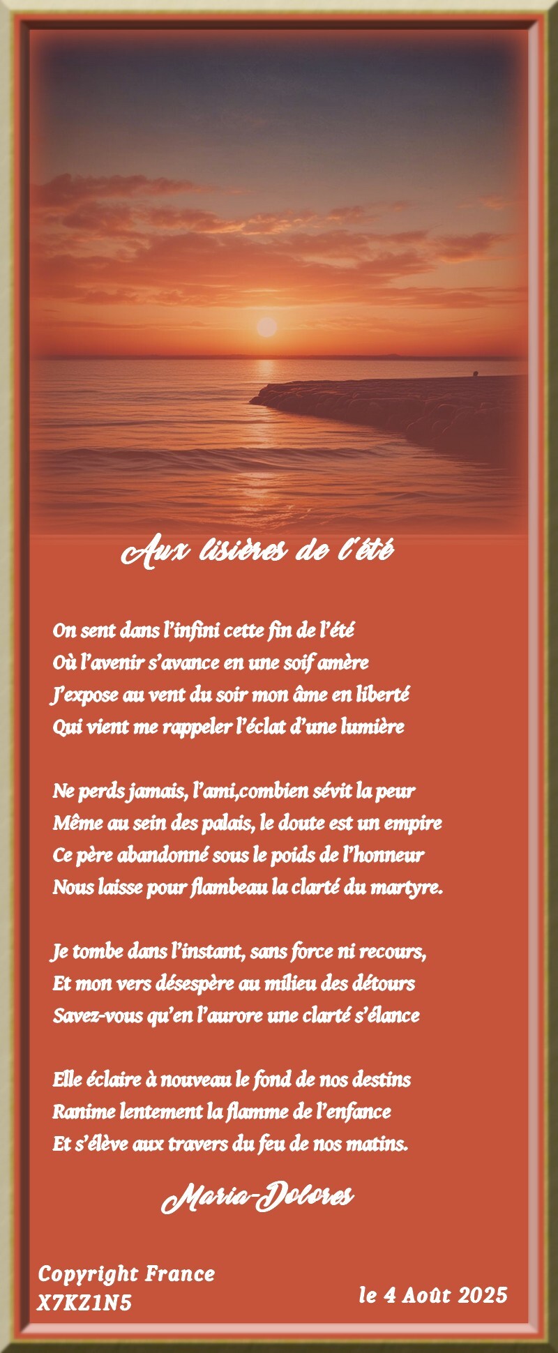 Et s’élève aux travers du feu de nos matins.Maria-Dolores