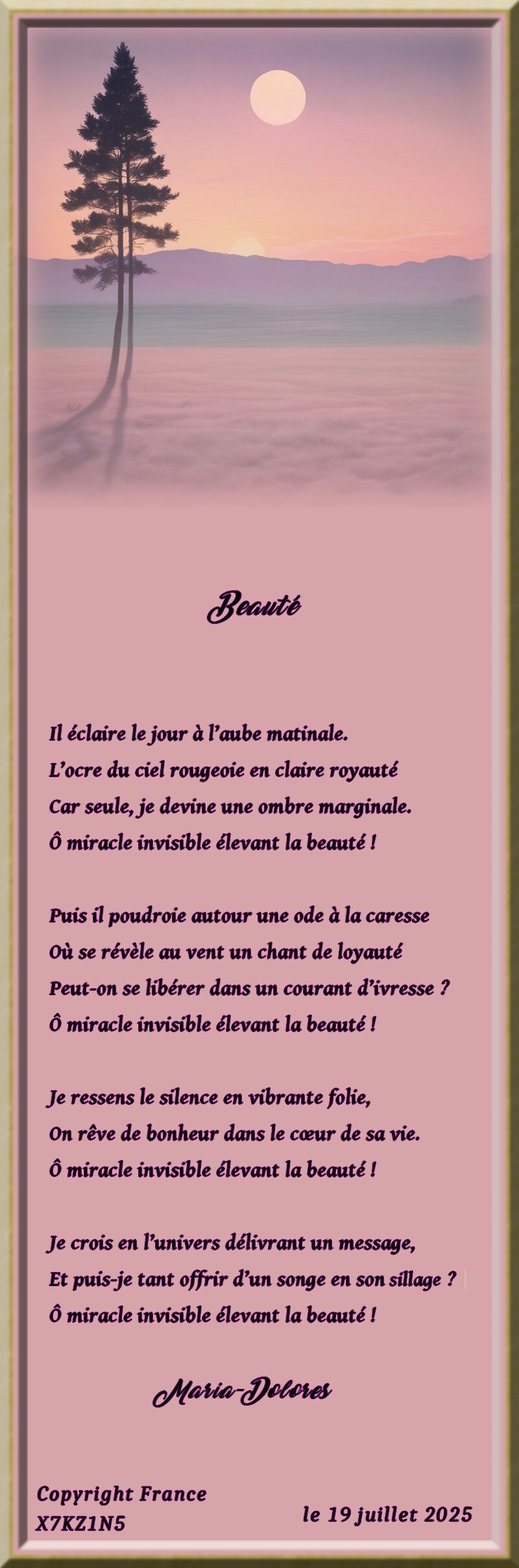 Ô miracle invisible élevant la beauté !Je crois en l’univers délivrant un message,