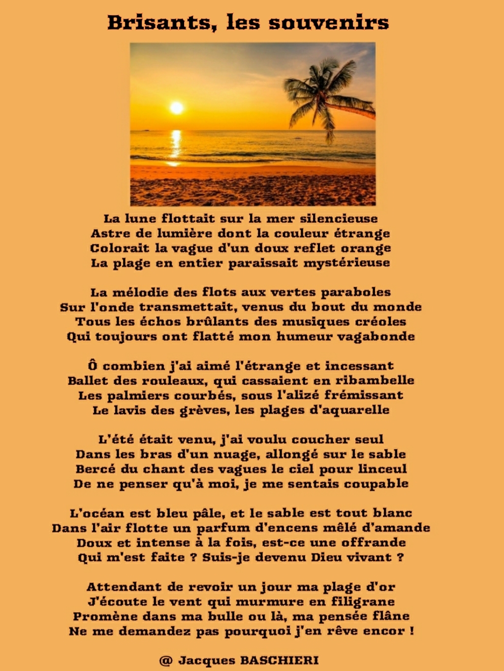 Qui m’est faite ? Suis-je devenu Dieu vivant ?Attendant de revoir un jour ma plage d’or