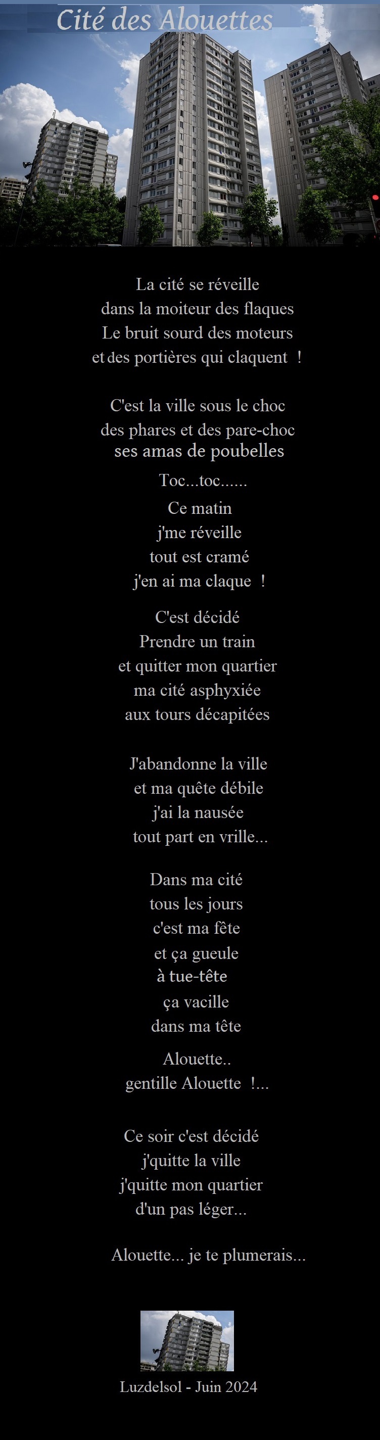 « Cité des Alouettes »-façon slam- Luzdelsol – juin 2024