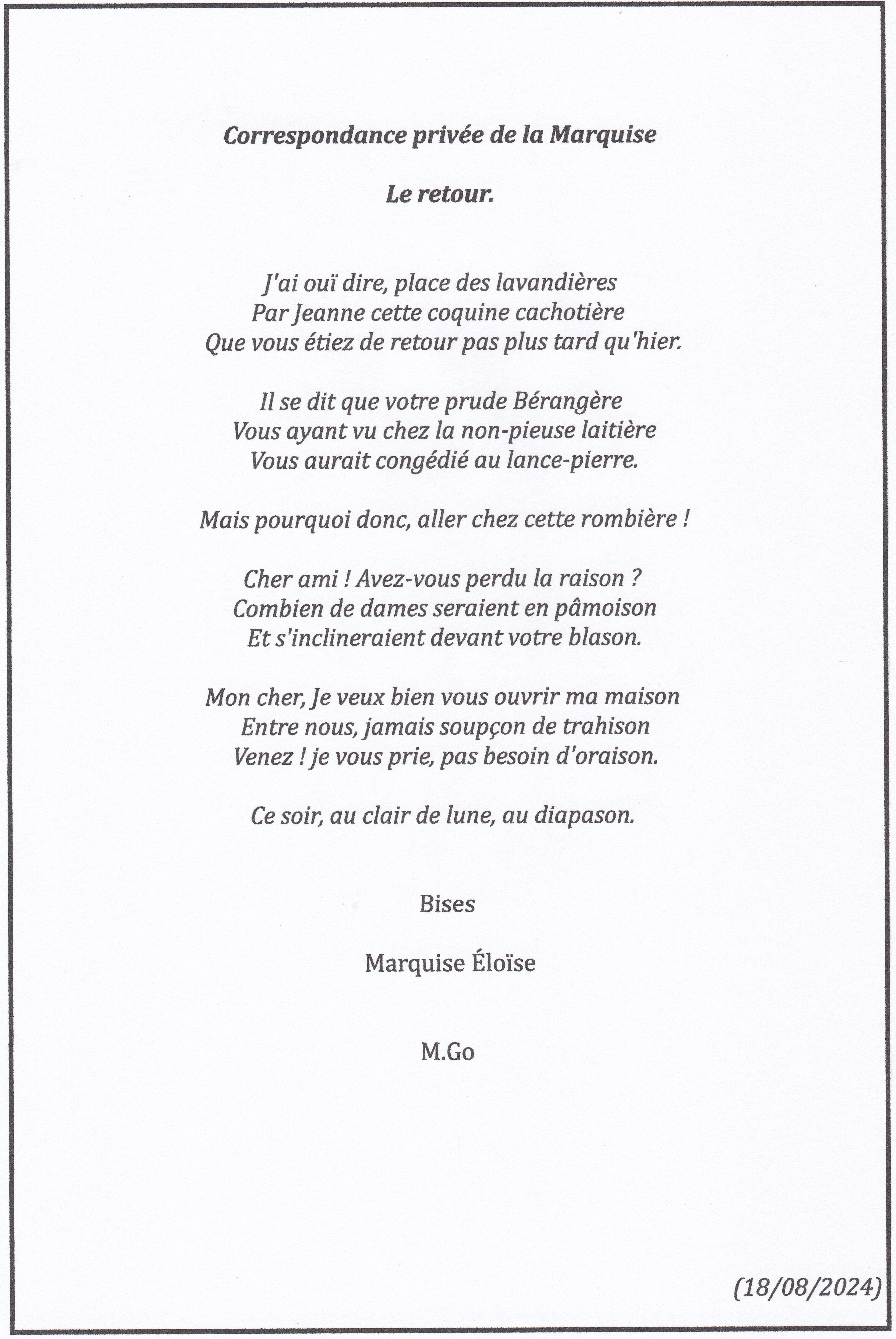 Un peu de poésie épistolaire pour le plaisir.