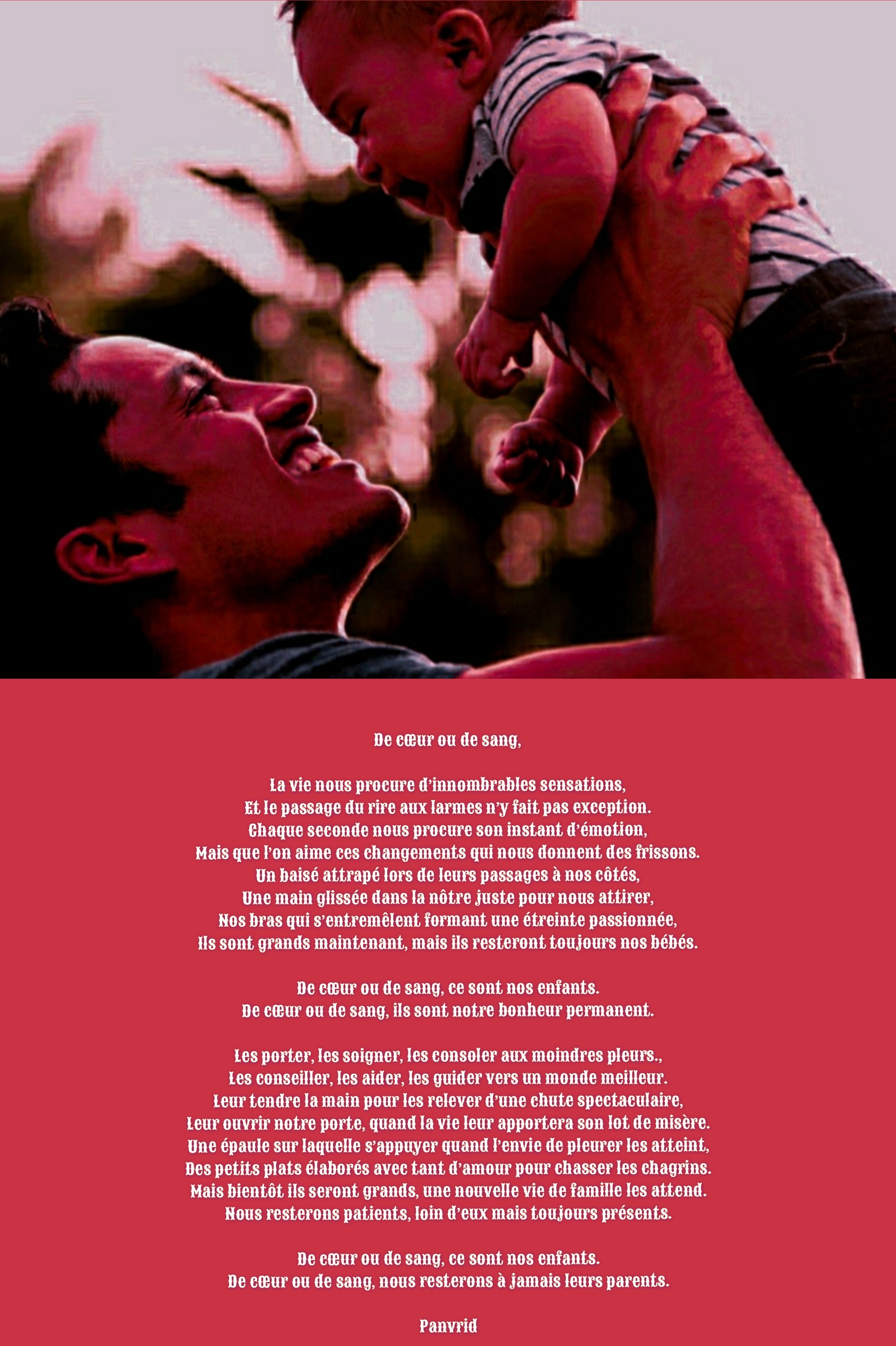 De cœur ou de sang, ils sont notre bonheur permanent.Les porter, les soigner, les consoler aux moindres pleurs.,