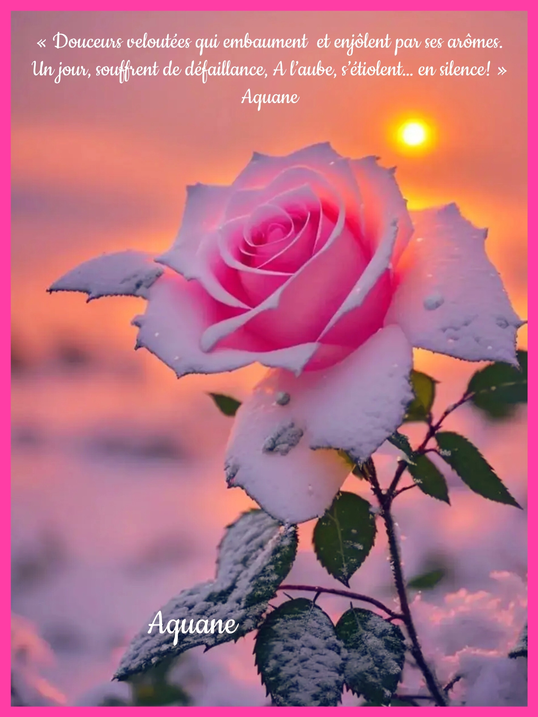 De défaillance!… Accueil › Vos poèmes ***UN SEUL PAR JOUR*** Les « poèmes » érotiques descriptifs ne sont pas les bienvenus... Ce sujet contient 5 réponses, 5 participants et a été mis à jour pour la dernière fois par VASSEUR, le 03-03-2024 19:46. Vous lisez 5 fils de discussion Auteur Messages 3 mars 2024 à 11h15 #3499454 Mascotte d'Oasis TIZI MOHAMED Sujet: 1702Réponses: 25075 superbement dit https://www.edilivre.com/peregrinations-29f53ef39f.html/ https://www.edilivre.com/le-spleen-de-la-logique-de-l-absurde-2c490d0b23.html/ 3 mars 2024 à 15h24 #3499493 SybillaMaître des clés Sujet: 5464Réponses: 79667 Bonjour ma chère amie Aquane, Somptueux distique plein de douceur romantique ! La mise en page est magnifique ! Belle journée chère amie poétesse Aquane ! Toutes mes amitiés Gros bisous Sybilla Le r?ve est le poumon de ma vie (Citation de Sybilla) 3 mars 2024 à 15h28 #3499495 Modérateur sion yohann Sujet: 1422Réponses: 21170 Bonjour poétesse , c’est magnifique de douceur J’adore Mes amitiés Yohann la nostalgie est un bouquet de fleurs enfoui au fond de votre coeur , qui vous embaume quand remontent les souvenirs du bonheur , yohann 3 mars 2024 à 16h04 #3499507 Plume de platine★★★★★☆ Eve-Lyne Sujet: 747Réponses: 6966 Tout en douceur Très beau Amitiés en bises EvE-LyNe 3 mars 2024 à 19h46 #2709785 VASSEUR Sujet: 2143Réponses: 2974 ][url=https://zupimages.net/viewer.php?id=24/09/ljnh.jpeg][/url] Création numérique 3 mars 2024 à 19h46 #3499573 VASSEUR Sujet: 2143Réponses: 2974 Je vous remercie pour « vos fragrances amicales! » Amclmt Nady Auteur Messages Vous lisez 5 fils de discussion Vous devez être connecté pour répondre à ce sujet. Connexion Identifiant: Mot de passe: Rester connecté Connexion Log in / Register