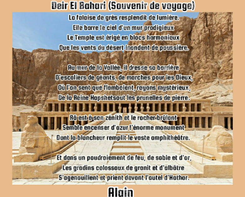 De la Reine Hapshetsout les prunelles de pierre.Râ est à son zénith et le rocher brûlant
