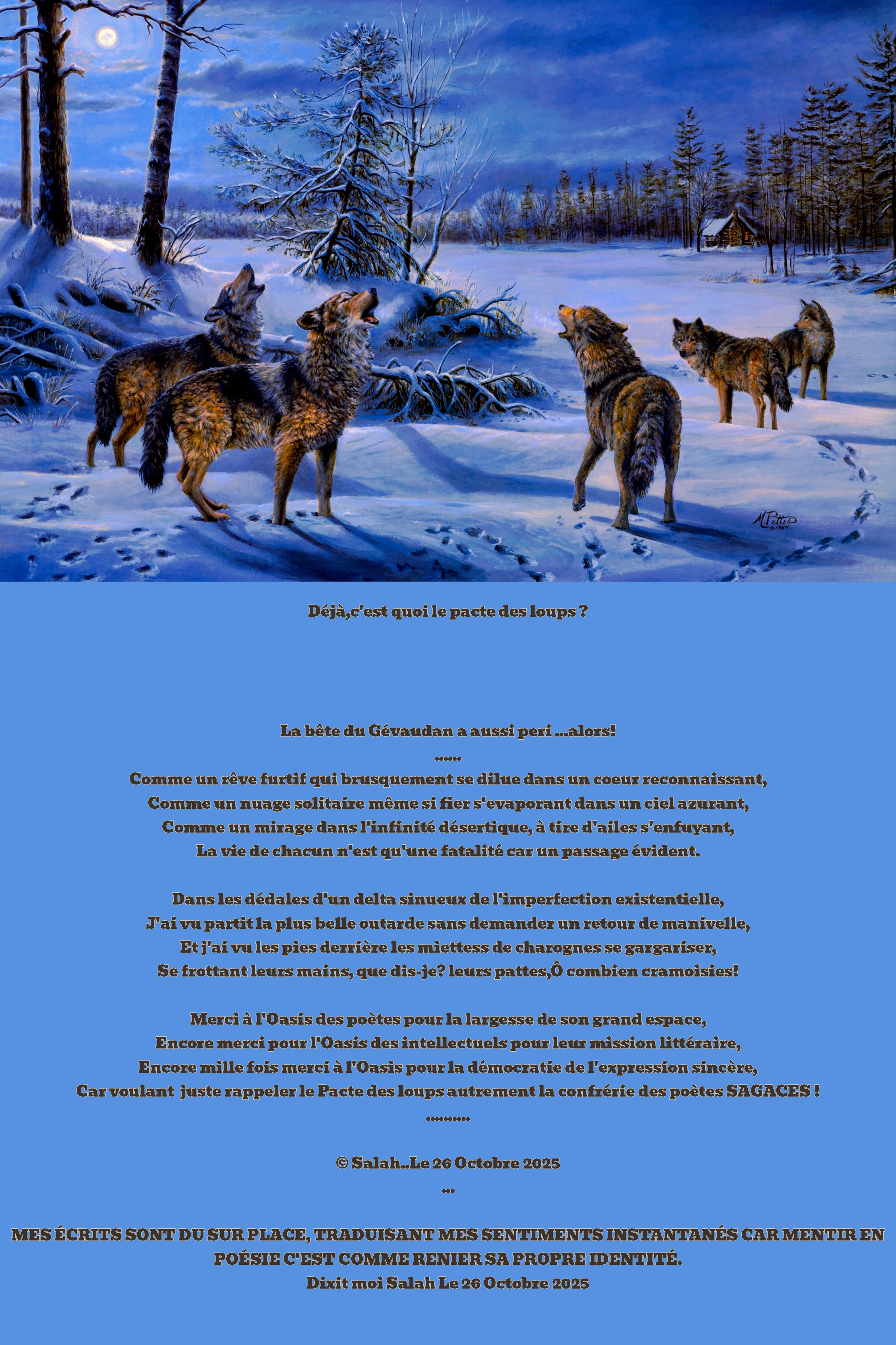 Car voulant juste rappeler le Pacte des loups autrement la confrérie des poètes SAGACES !