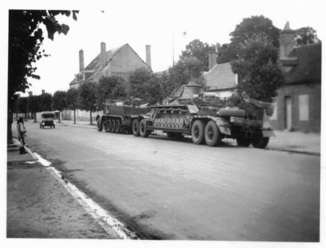 Voici un half-track Sd.kfz 9 FAMO de 18t employé pour le dépannage de chars, il tracte une remorque porte-char Sd.ah 116 conçue pour les chars panzer III et IV