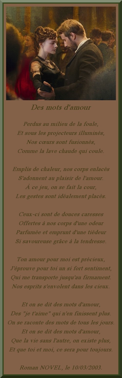Bonsoir RomaNovel, merci pour ce très touchant poème sur l’amour. C’est vraiment très joli.
