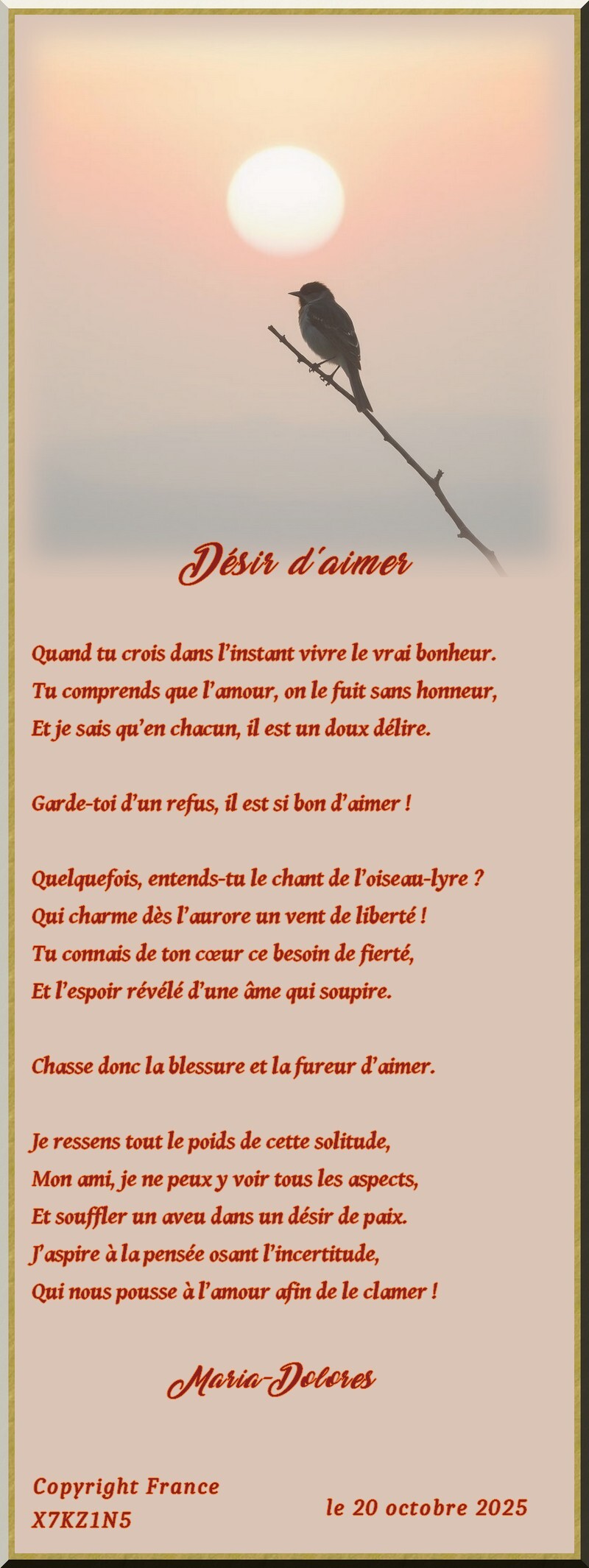 Qui nous pousse à l’amour afin de le clamer !Maria-Dolores