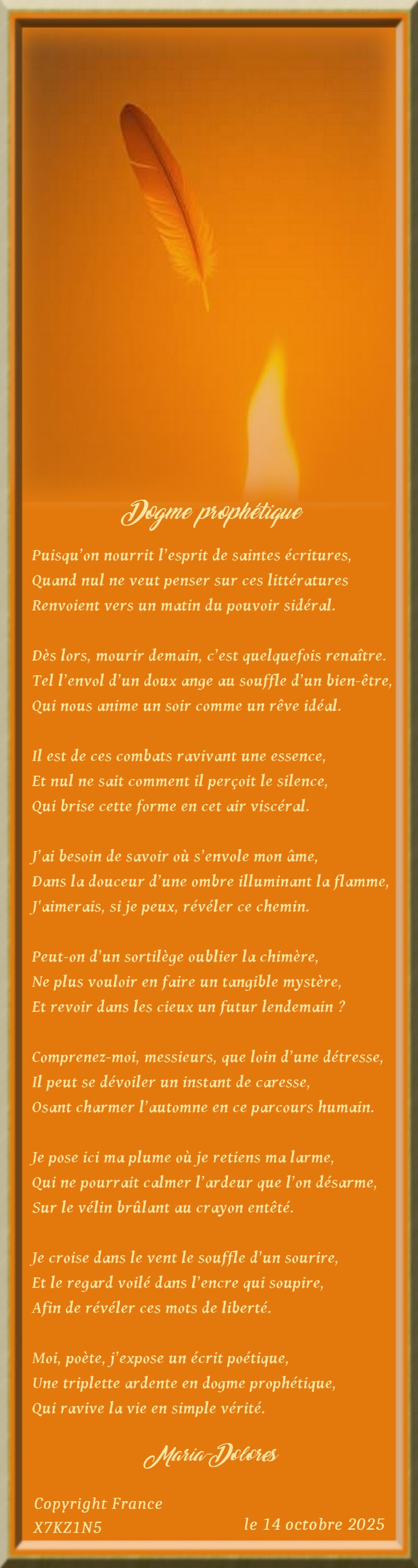 Dogme prophétique est mon chant d’espérance.
