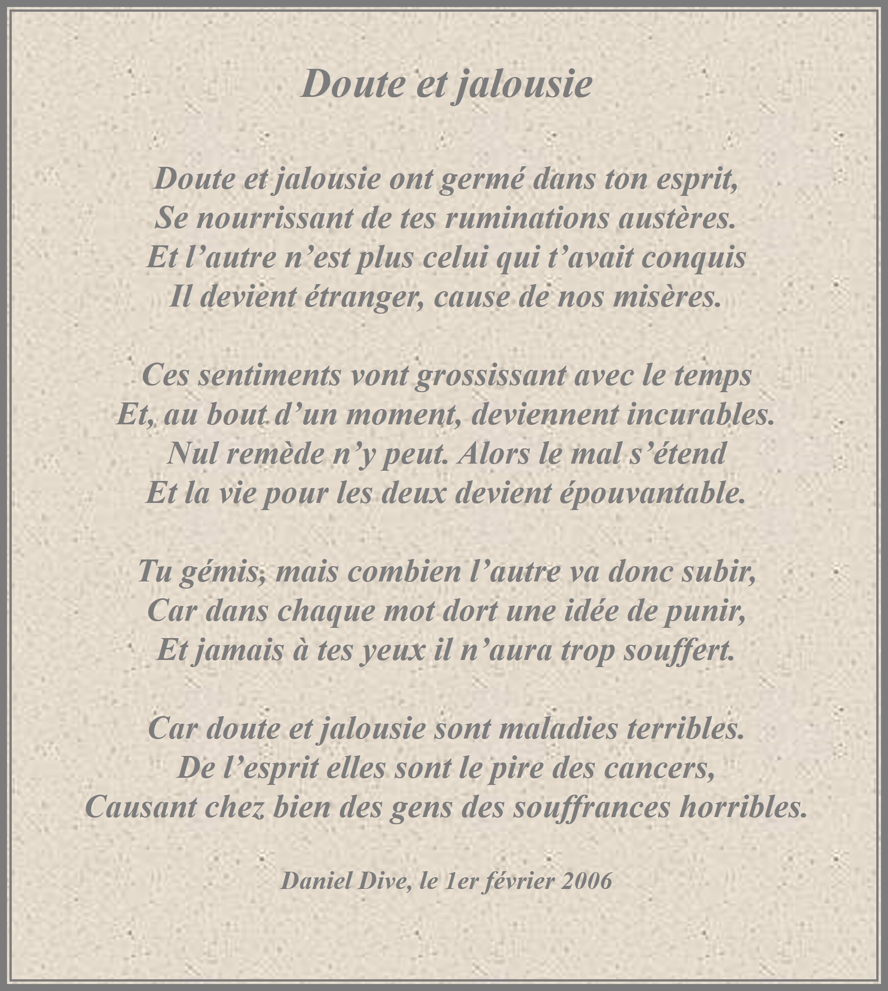 Et jamais à tes yeux il n’aura trop souffert.Car doute et jalousie sont maladies terribles.