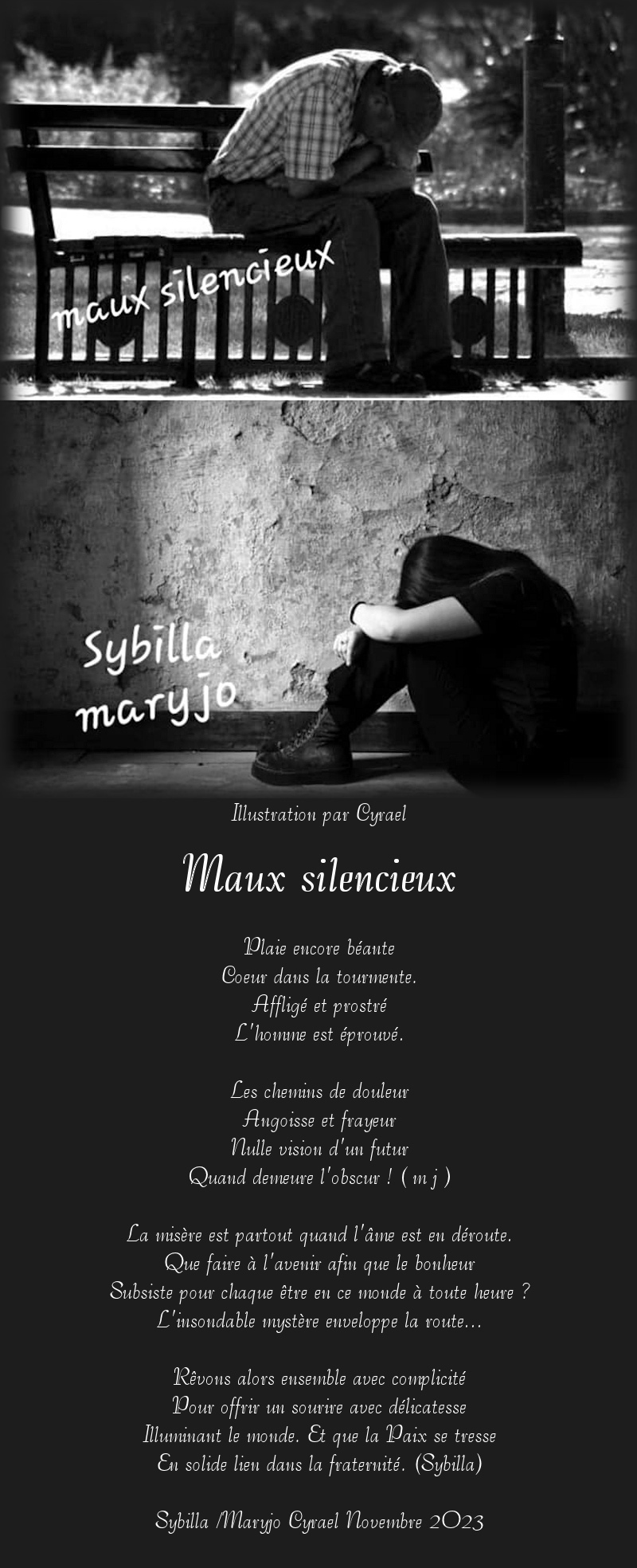 Bonsoir Mary jo et très chère Sybilla, la misère dans le monde s’accélère il est malheureux de voir en 2023 de pauvres gens subirent la rue , le manque d’alimentations, les problèmes d’hygiène et j’en oublie