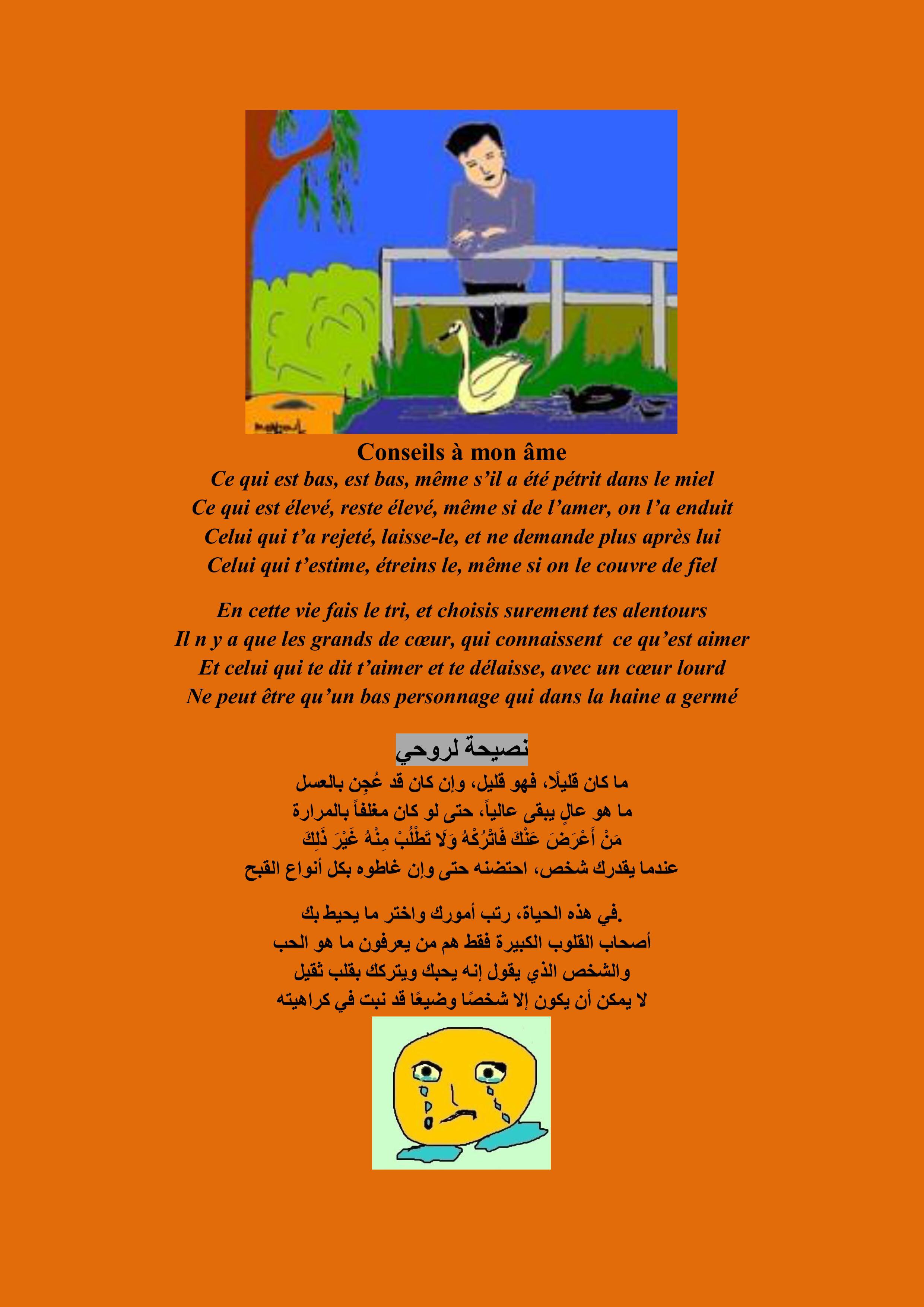 PS: des pensées qui ont traversées ma tête, et que j’ai fait en arabe, je les ai traduite sous forme de poème en français