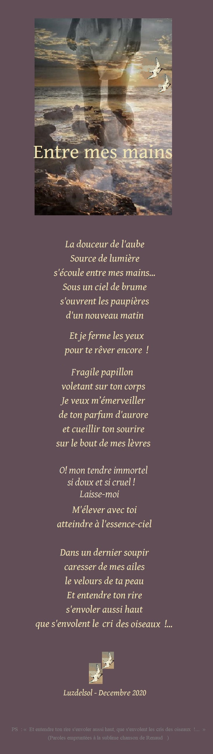 que s’envolent le cri des oiseaux !…«Entre mes mains » Luzdelsol – Dec. 2020