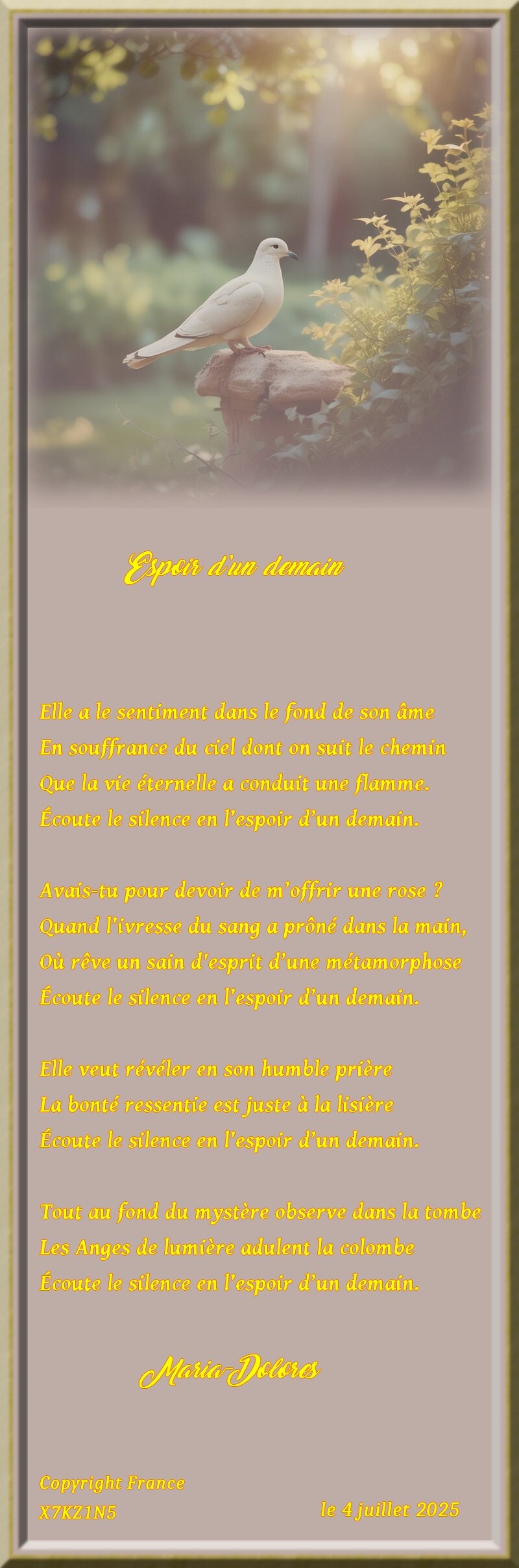 Écoute le silence en l’espoir d’un demain.Maria-Dolores