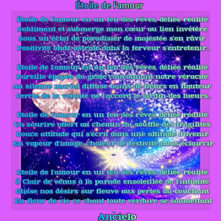 Positivité onde astrale dans la ferveur s’entretenir…Étoile de l’amour en un feu des rêves, déliée réalité