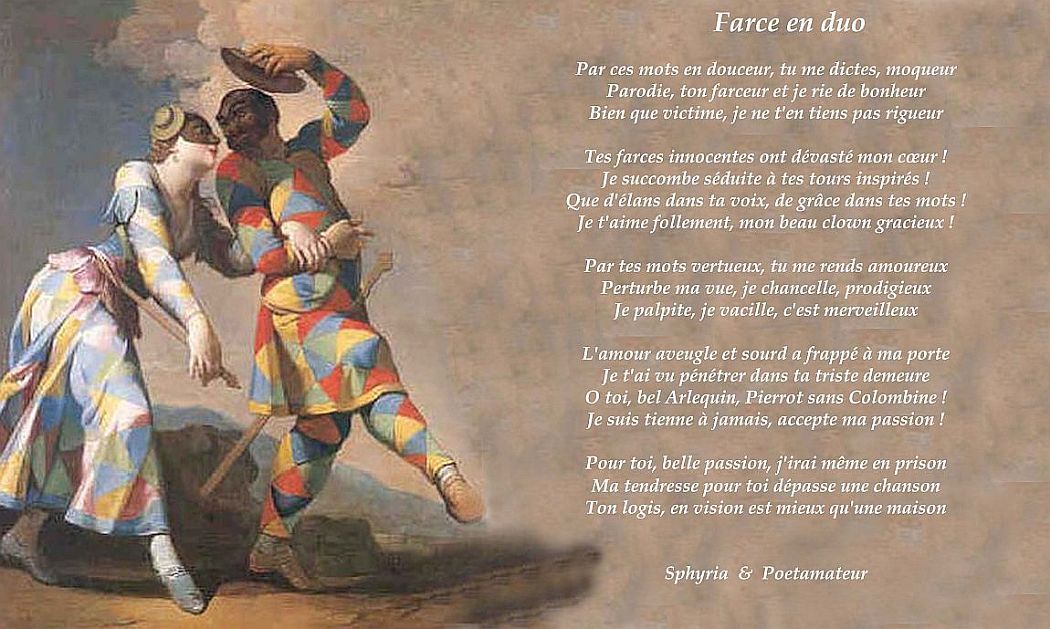 Je t’aime follement, mon beau clown gracieux !Par tes mots vertueux, tu me rends amoureux,