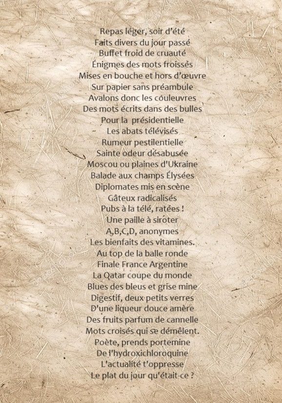 Flash-back -au menu ou à la carte de l’année 2022Repas léger, soir d’été