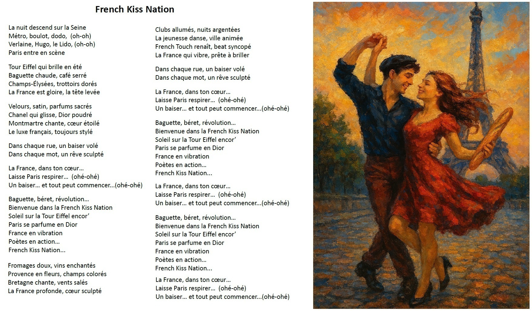 La France qui vibre, prête à brillerDans chaque rue, un baiser volé