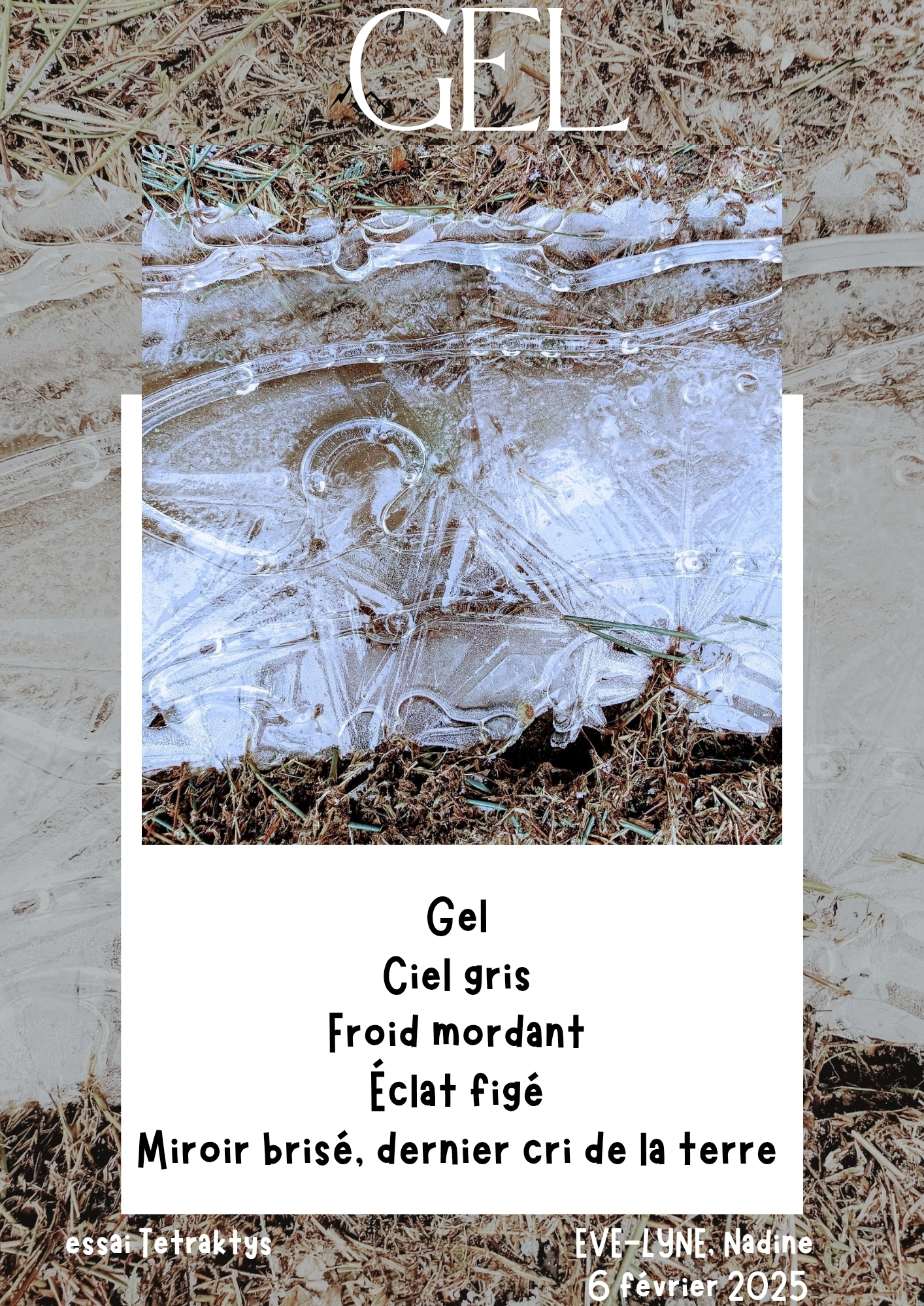 Gel Accueil › Vos poèmes ***UN SEUL PAR JOUR*** Les « poèmes » érotiques descriptifs ne sont pas les bienvenus... Ce sujet contient 11 réponses, 11 participants et a été mis à jour pour la dernière fois par Georgiu Cornel, le 10-02-2025 19:05. Créateur Sujet 10 février 2025 à 19h05 #2718370 Plume de platine★★★★★☆ Eve-Lyne Sujet: 747Réponses: 6966 Gel Ciel gris Froid mordant Éclat figé Miroir brisé, dernier cri de la terre Essai Tetraktys Eve-Lyne, Nadine le 06/02/2025 EvE-LyNe Créateur Sujet Vous lisez 10 fils de discussion Auteur Réponses 6 février 2025 à 19h49 #3555417 Mascotte d'Oasis Ancielo Sujet: 847Réponses: 8953 Profond et beau. Alarmant haïku. 6 février 2025 à 21h30 #3555459 SybillaMaître des clés Sujet: 5464Réponses: 79667 Bonsoir Chère Amie poétesse Nadine, Superbe tetrakys sur le gel qui sévit en de nombreux lieux ces derniers jours ! Belle soirée Chère Amie poétesse Nadine ! Toutes mes amitiés Gros bisous Sybilla Le r?ve est le poumon de ma vie (Citation de Sybilla) 8 février 2025 à 3h43 #3555622 Lyria Sujet: 80Réponses: 6608 Eve-lyne, Un magnifique tetraktys qui décrit très bien ce temps de gel qui semble anéantir la terre Amitiés poétiques Mes recueils de po?sies et de nouvelles publi?s aux ?ditions Amalth?e. 8 février 2025 à 7h30 #3555640 Sympatique Sujet: 615Réponses: 12189 Quand on appelle ce dégel 8 février 2025 à 8h48 #3555665 Mascotte d'Oasis poemic Sujet: 1020Réponses: 17621 Oui ! on gèle ! Appelons Damart ! Belle évocation du gel dans une jolie mise en page Amitiés en bises michel [color=990000]MON 2eme RECUEIL...JE TE PORTE L'AUBE..EST DISPONIBLE..[/color] http://www.oasisdesartistes.com/modules/newbbex/viewtopic.php?topic_id=97282&forum=47 8 février 2025 à 11h26 #3555695 Merdesiles Sujet: 2532Réponses: 6317 Il fait froid l’hiver est long et gris , la terre pleure aussi 9 février 2025 à 8h20 #3555784 Plume de diamant★★★★★★ cyrael Sujet: 4849Réponses: 48873 ____ mon Amie de coeur Nadine _____ j’aime cette belle illustration_________________ gel dans la nature en effet, les températures sont froides vive la poésie, et le partage, excellent tétraktys * je te souhaite un merveilleux dimanche bisous du coeur l'Amour rayonne quand l'Ame s'?l?ve, citation maryjo 9 février 2025 à 9h18 #3555809 Mickaelle Sujet: 781Réponses: 13295 belle illustration……………bien réussi le tétraktys………le gel…………..oui, vivement le printemps……….. 10 février 2025 à 5h48 #3555950 Plume de platine★★★★★☆ Eve-Lyne Sujet: 747Réponses: 6966 Merci ami poétesses et poètes pour vos lectures et commentaires sous le poème Amitiés en bises EvE-LyNe 10 février 2025 à 18h28 #3556051 Fran?ois Sujet: 300Réponses: 49951 Bonsoir Eve-Lyne, très beau coup de froid sur ces vers Amitiés La po?sie, c'est comme la cuisine, le mot faitout 00063312-1 10 février 2025 à 19h05 #3556054 Georgiu Cornel Sujet: 453Réponses: 3002 « Miroir brisé, dernier cri de la terre » J’aime beaucoup cette métaphore. Super ! Auteur Réponses Vous lisez 10 fils de discussion Vous devez être connecté pour répondre à ce sujet. Connexion Identifiant: Mot de passe: Rester connecté Connexion Log in / Register