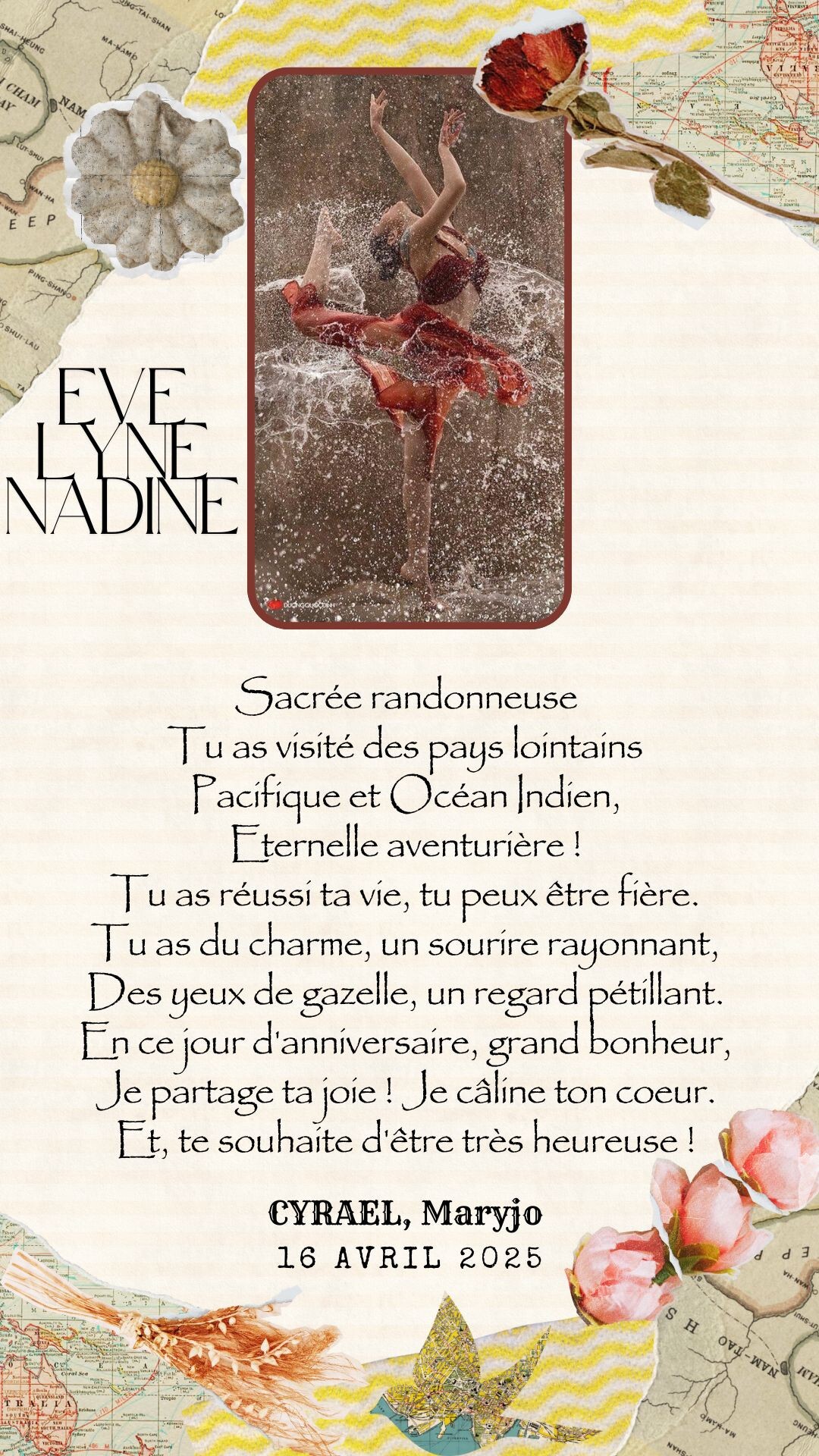 Et, te souhaite d’être très heureuse !Maryjo cyrael 16 AVRIL 2O25