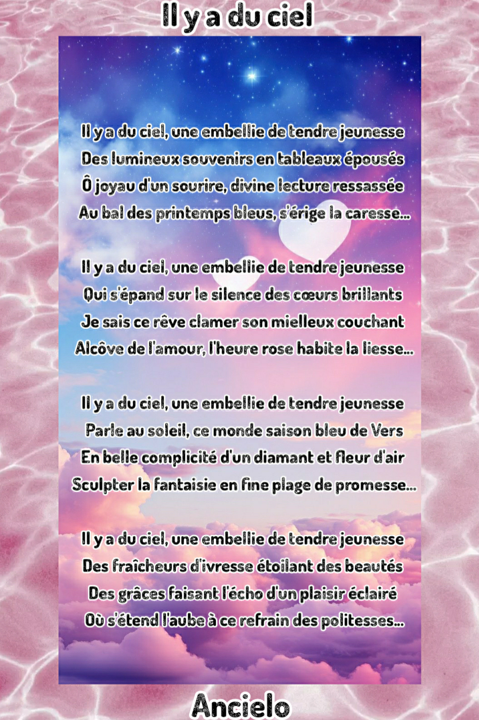 Alcôve de l’amour, l’heure rose habite la liesse…Il y a du ciel, une embellie de tendre jeunesse