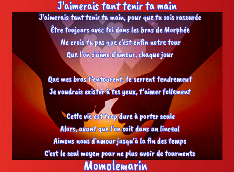 Que l’on s’aime d’amour, chaque jourQue mes bras t’entourent, te serrent tendrement