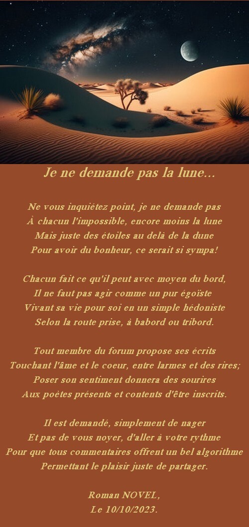 Et si vous ne demandez pas la lune, ne l’avez-vous pas offerte déjà…. Et pourquoi pas…..