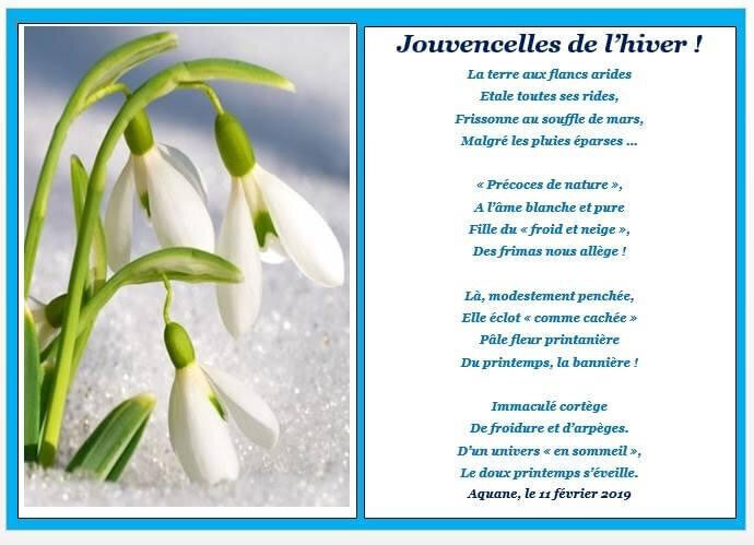 Quelles merveilleuses petites fleurs si douces à la vision de ces jouvencelles ornant les paysages d’hiver et annonçant le printemps prochain !