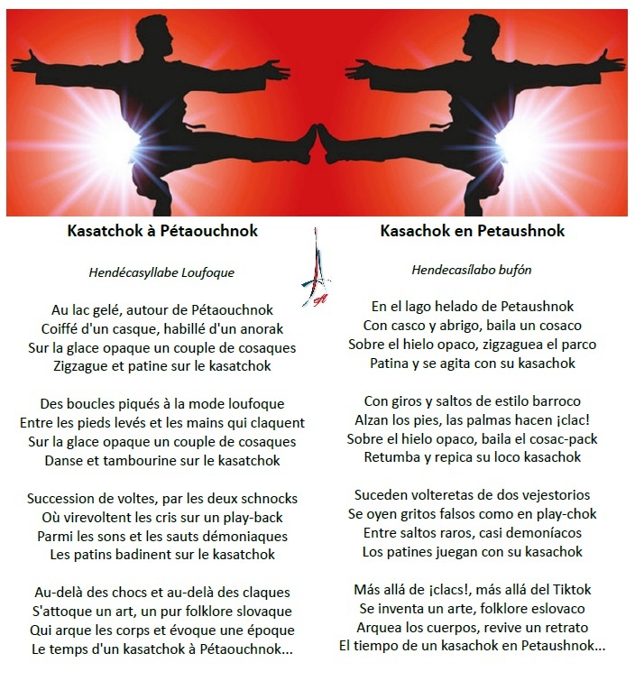 Kasachok, kasachok, rit le cosaque ! À Pétaouchnok résonne la glace opaque, Kasachok, kasachok, clac et TikTok !
