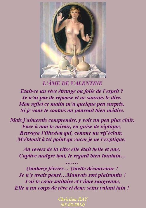 » L’ ÂME DE VALENTINE « Accueil › Vos poèmes ***UN SEUL PAR JOUR*** Les « poèmes » érotiques descriptifs ne sont pas les bienvenus... Ce sujet contient 2 réponses, 3 participants et a été mis à jour pour la dernière fois par Fran?ois, le 11-02-2024 17:02. Créateur Sujet 11 février 2024 à 17h02 #2709201 Mascotte d'Oasis christian Sujet: 6554Réponses: 13392 [url=https://zupimages.net/viewer.php?id=24/06/t3j5.jpg][/url] Christian RAY avec Michel Drucker et Patrice Laffont Créateur Sujet Vous lisez 1 fil de discussion Auteur Réponses 11 février 2024 à 7h34 #3495820 Mascotte d'Oasis elhousaini Sujet: 314Réponses: 5877 Un vrai régal et un plaisir matinal de lecture. Merci poète. 11 février 2024 à 17h02 #3495877 Fran?ois Sujet: 300Réponses: 49951 Bonsoir Chris, une période à laquelle la solitude engendre quelques hallucinations Amitiés La po?sie, c'est comme la cuisine, le mot faitout 00063312-1 Auteur Réponses Vous lisez 1 fil de discussion Vous devez être connecté pour répondre à ce sujet. Connexion Identifiant: Mot de passe: Rester connecté Connexion Log in / Register