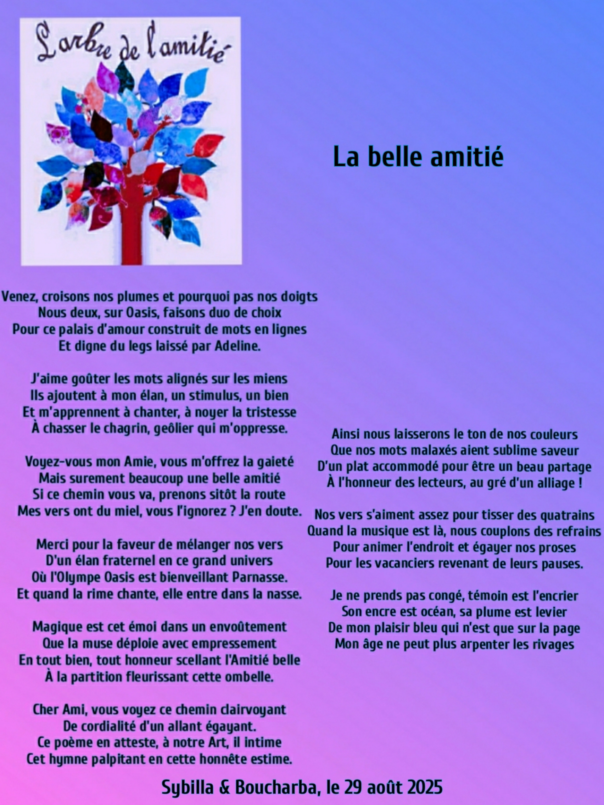 À l’honneur des lecteurs, au gré d’un alliage !Nos vers s’aiment assez pour tisser des quatrains