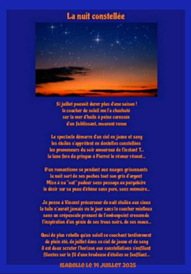 filantes sur le fil d’une brodeuse d’étoiles se faufilant …Isabelle le 14 juillet 2025