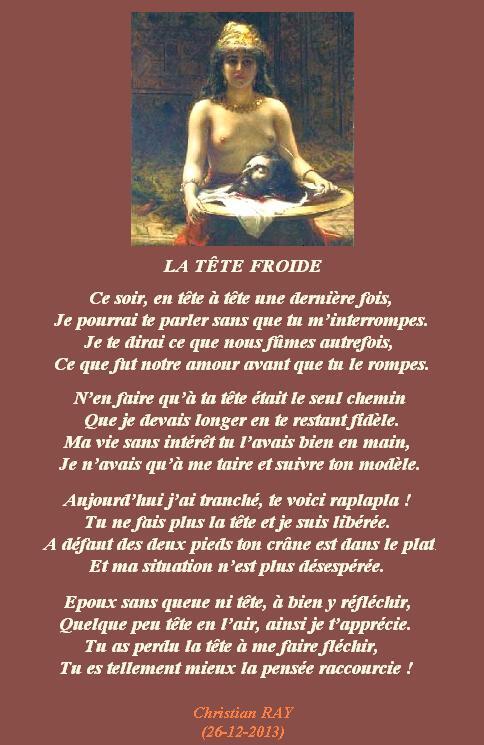 » LA TÊTE FROIDE « Accueil › Vos poèmes ***UN SEUL PAR JOUR*** Les « poèmes » érotiques descriptifs ne sont pas les bienvenus... Ce sujet contient 4 réponses, 5 participants et a été mis à jour pour la dernière fois par PENELOPE, le 05-04-2025 16:18. Créateur Sujet 5 avril 2025 à 16h18 #2719049 Mascotte d'Oasis christian Sujet: 6554Réponses: 13392 [url=https://zupimages.net/viewer.php?id=23/40/k1lo.jpg][/url] Christian RAY avec Michel Drucker et Patrice Laffont Créateur Sujet Vous lisez 3 fils de discussion Auteur Réponses 31 mars 2025 à 15h08 #3560878 Mascotte d'Oasis poemic Sujet: 1020Réponses: 17621 Triste retour sur le passé ! Après avoir pécher….voici le temps de pêcher.. ( dès demain ! invitation appréciée Christian ! ) bel Avril ! michel [color=990000]MON 2eme RECUEIL...JE TE PORTE L'AUBE..EST DISPONIBLE..[/color] http://www.oasisdesartistes.com/modules/newbbex/viewtopic.php?topic_id=97282&forum=47 31 mars 2025 à 20h24 #3560932 SybillaMaître des clés Sujet: 5464Réponses: 79667 Bonsoir Cher Ami poète Christian, Humour, quand il te tient ! Belle soirée Cher Ami poète Christian ! Toutes mes amitiés Sybilla Le r?ve est le poumon de ma vie (Citation de Sybilla) 5 avril 2025 à 15h34 #3561371 Fran?ois Sujet: 300Réponses: 49951 Bonsoir Chris, de nos jours on perd la tête pour un oui ou pour un non Amitiés La po?sie, c'est comme la cuisine, le mot faitout 00063312-1 5 avril 2025 à 16h18 #3561389 PENELOPE Sujet: 327Réponses: 3647 Il a perdu la tête ce mec là On a tous le sang de la m?me couleur Auteur Réponses Vous lisez 3 fils de discussion Vous devez être connecté pour répondre à ce sujet. Connexion Identifiant: Mot de passe: Rester connecté Connexion Log in / Register