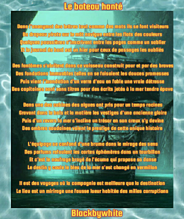 Et le journal de bord est un hier pour ceux de passages les oubliésDes fantômes s’abritent dans ce vaisseau construit pour et par des braves