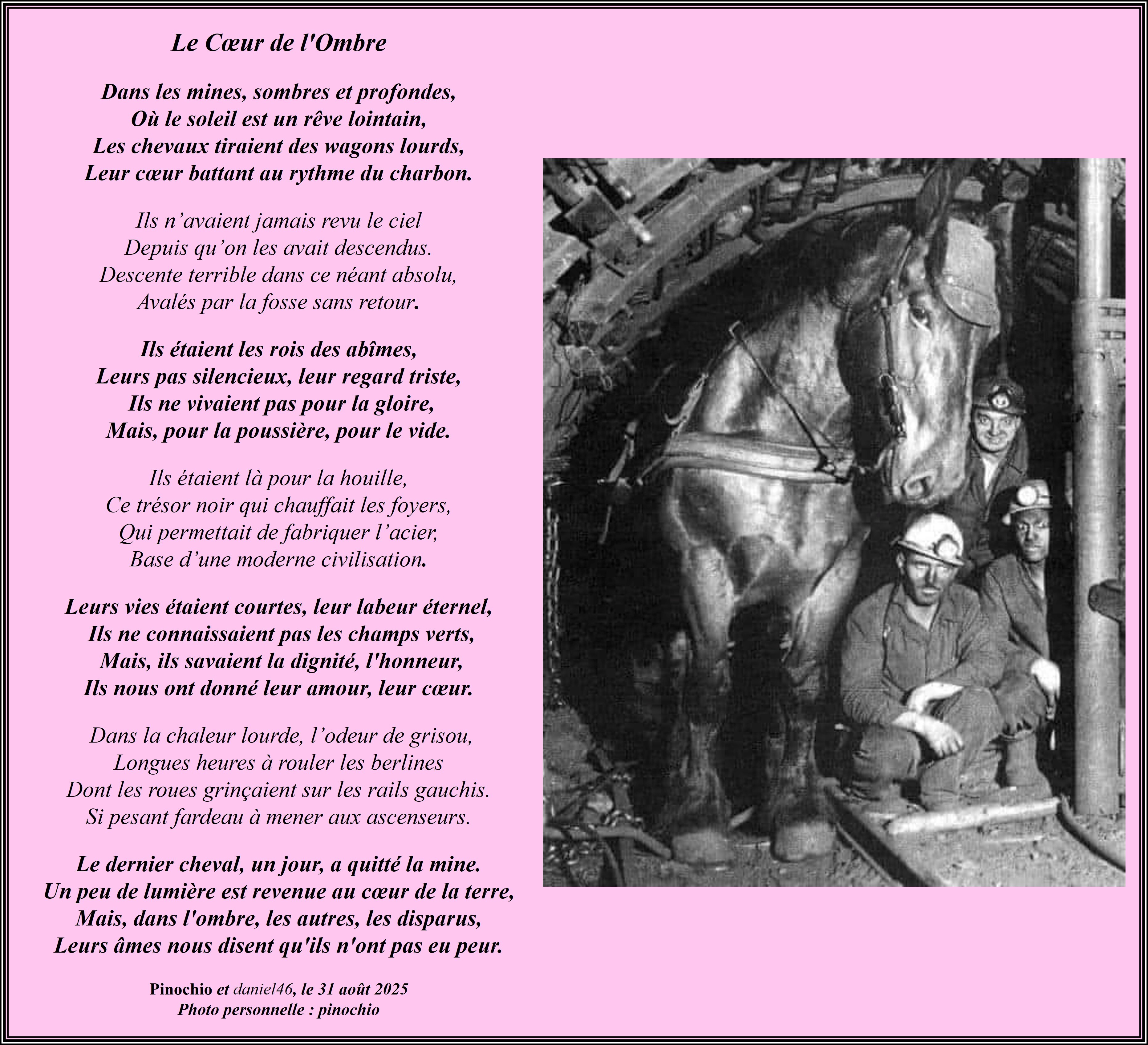 Ils nous ont donné leur amour, leur cœur.Dans la chaleur lourde, l’odeur de grisou,