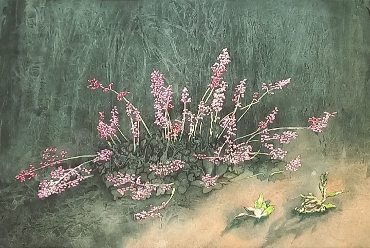 Halo de lumière sur le bouquet champêtre…L’Heuchère est aussi appelée le désespoir du peintre tant elle est difficile à peindre !!