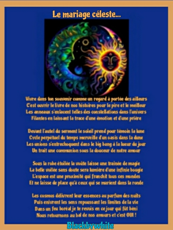 Un trait une communion sous la douceur de notre amourSous la robe étoilée la voûte laisse une trainée de magie