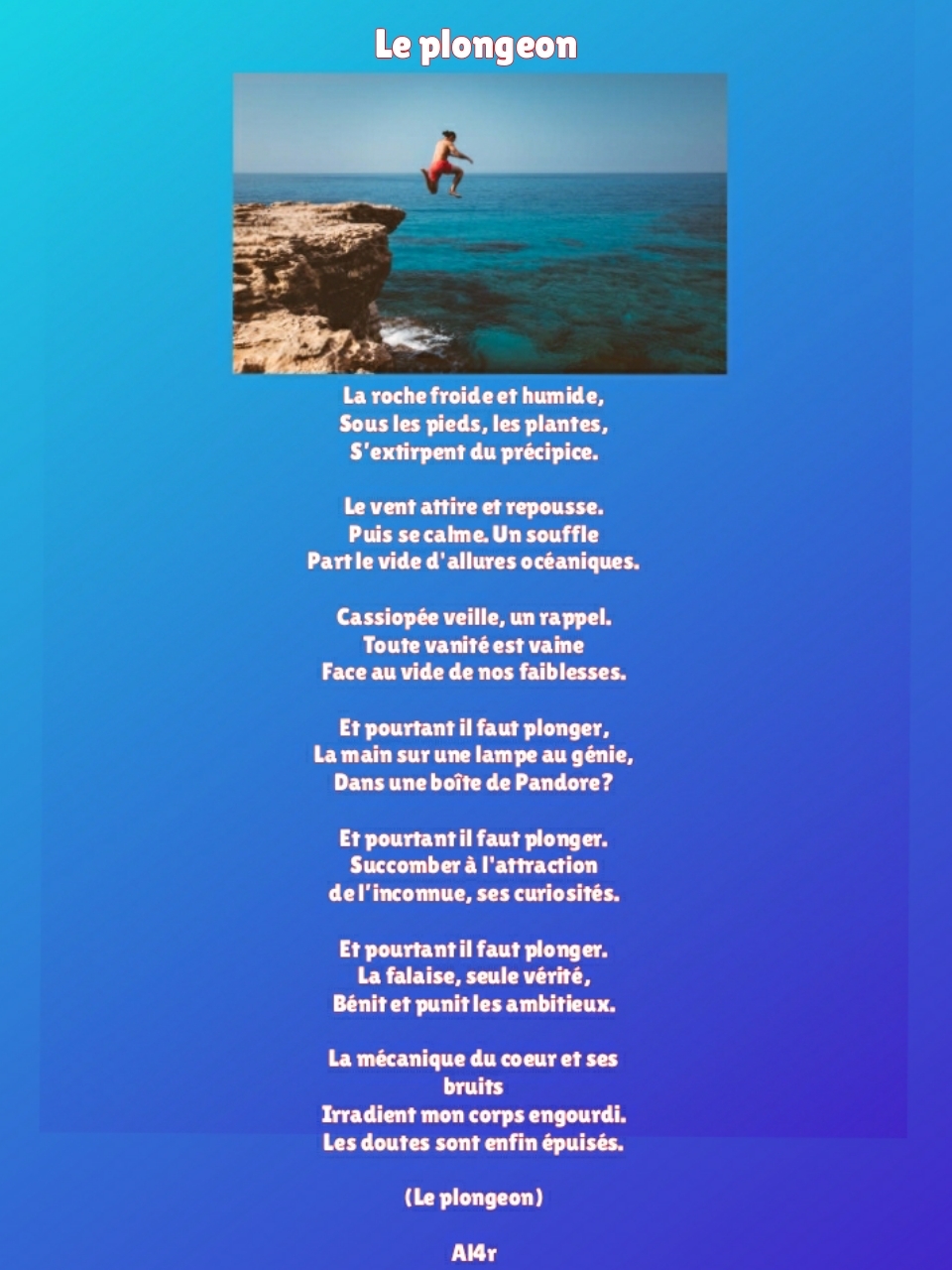 Face au vide de nos faiblesses.Et pourtant il faut plonger,