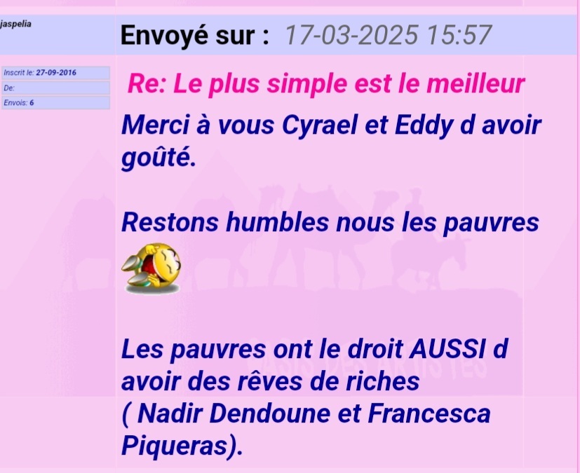 Bonsoir ma Chère Amie Jaspelia,