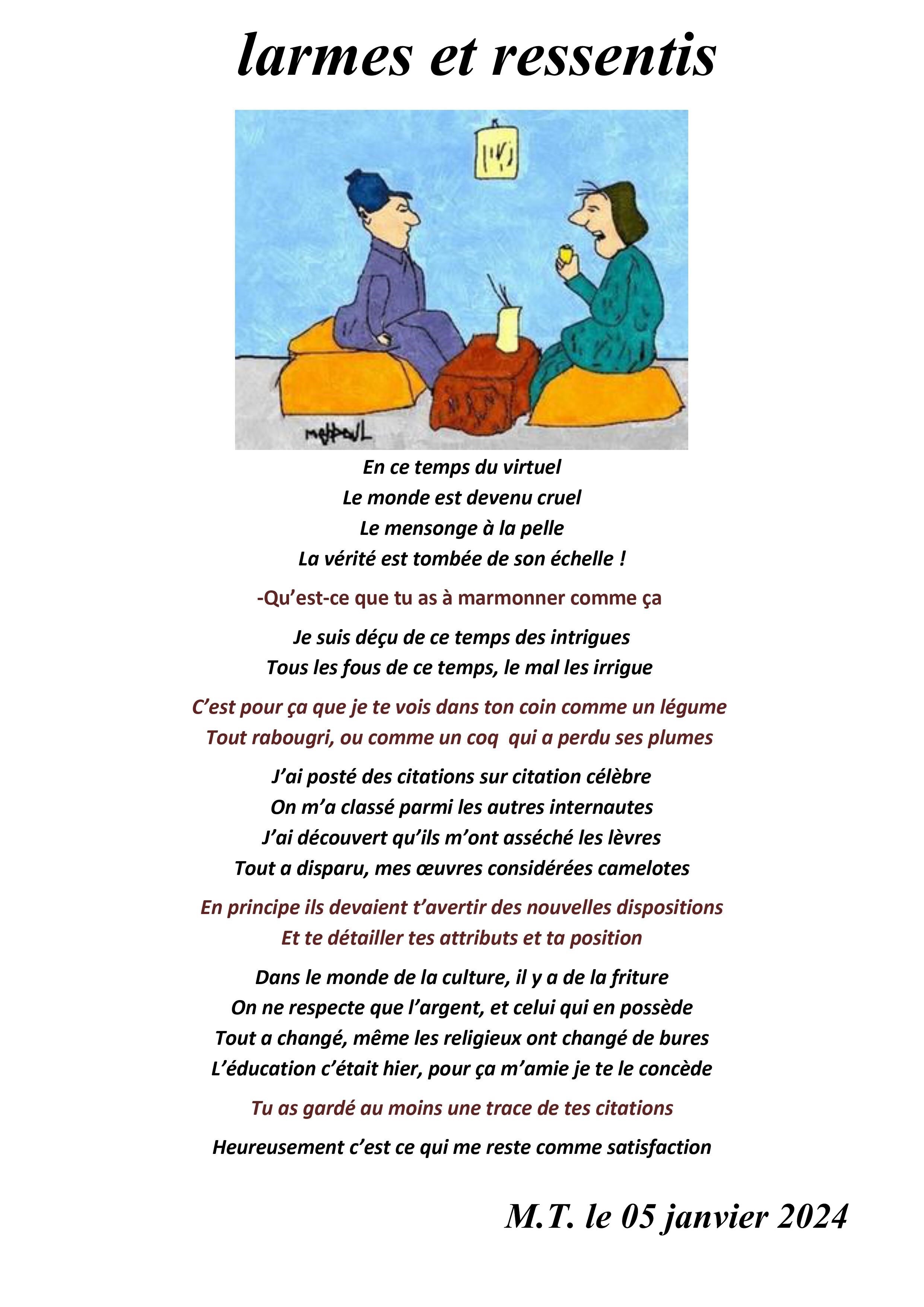 un petit sketch poétique pour dénoncer certains agissements infantiles de ce temps