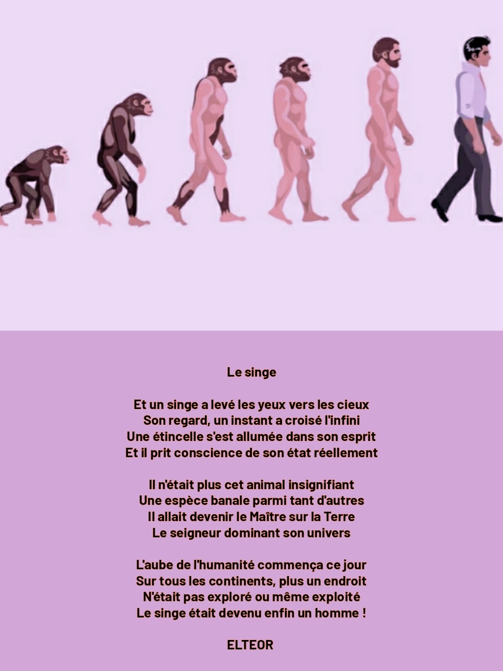 Le singe était devenu enfin un homme !A mettre dans la rubrique du poème du mois HUMANITE
