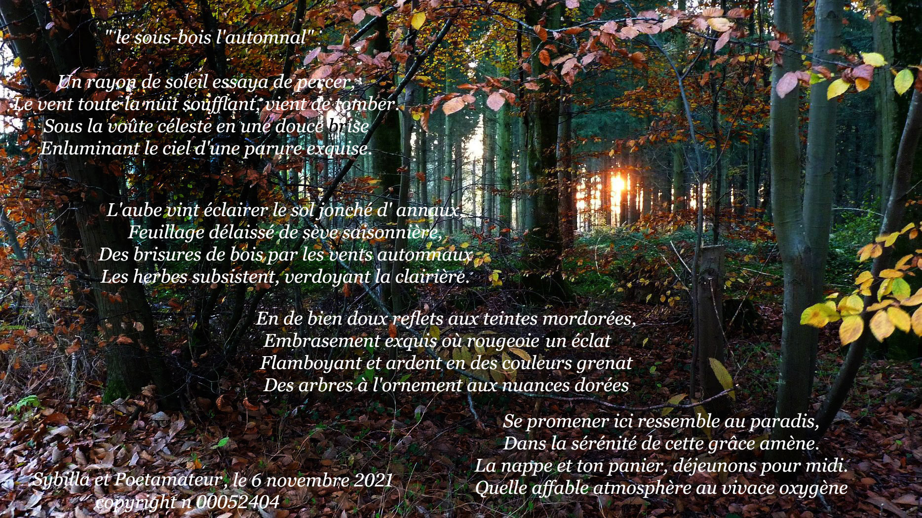 duo sur : » le sous-bois l’automnal »Un rayon de soleil essaya de percer,