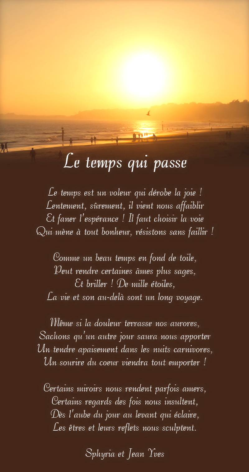 Superbe poème sur ce temps qui nous fait passer malgré nous…!