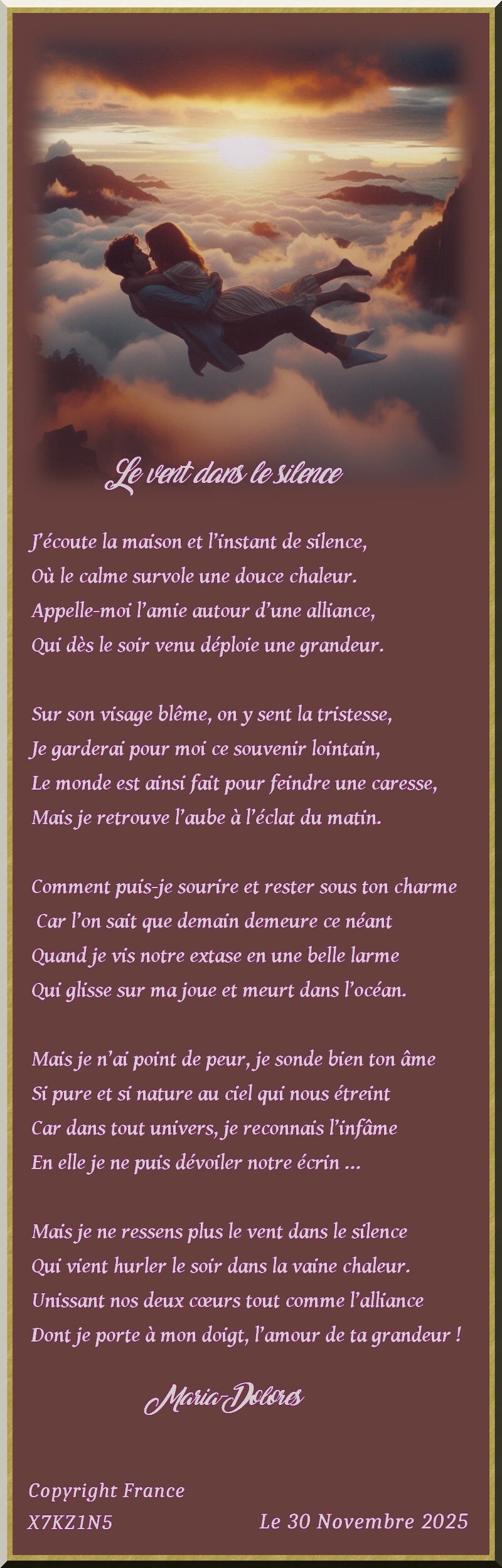En elle je ne puis dévoiler notre écrin …Mais je ne ressens plus le vent dans le silence